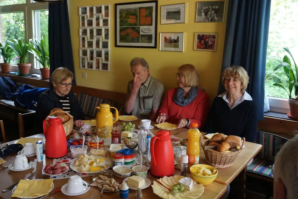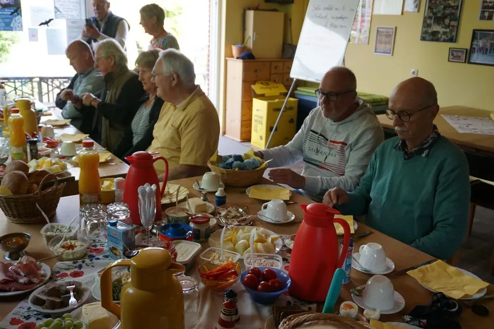 Es war wieder ein gelungenes Frühstück, dass Christiane und Paul am Pfingstmontag angeboten hatten. Den 21 Teilnehmern wurden leckere Köstlichkeiten für jeden Geschmack angeboten. Sogar die vielgeliebte Nussnougatcreme. Leckere Käse- und Wurstsorten, gekochte Eier, Marmeladen und frische Brötchen aber auch leckere Obstsorten boten für jeden Geschmack etwas. Bei den Vor- und Nacharbeiten halfen wieder viele fleißige Hände. Und Tennisspielen???------ natürlich wurde auch Tennis gespielt. Im Anschluß saß man noch nett bis lustig auf der Terrasse bei Bier, Sekt und netten Gesprächen zusammen.