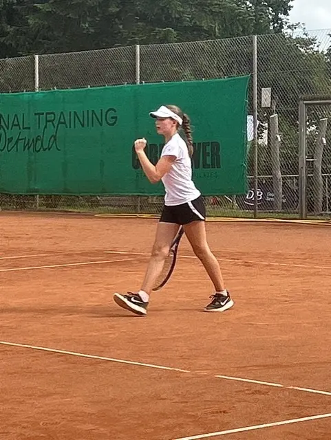 Besonders das Match am Samstag gegen die besser gesetzte Sophia Heinrich (Hangelar) forderte Claire sowohl spielerisch als auch konditionell bei hohen Temperaturen. Mit 6:3 und 6:3 zog sie ins Finale ein, musste dort aber der kräftezehrenden Turnierwoche Tribut zollen.