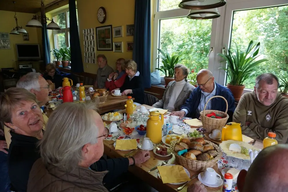 Es war wieder ein gelungenes Frühstück, dass Christiane und Paul am Pfingstmontag angeboten hatten. Den 21 Teilnehmern wurden leckere Köstlichkeiten für jeden Geschmack angeboten. Sogar die vielgeliebte Nussnougatcreme. Leckere Käse- und Wurstsorten, gekochte Eier, Marmeladen und frische Brötchen aber auch leckere Obstsorten boten für jeden Geschmack etwas. Bei den Vor- und Nacharbeiten halfen wieder viele fleißige Hände. Und Tennisspielen???------ natürlich wurde auch Tennis gespielt. Im Anschluß saß man noch nett bis lustig auf der Terrasse bei Bier, Sekt und netten Gesprächen zusammen.